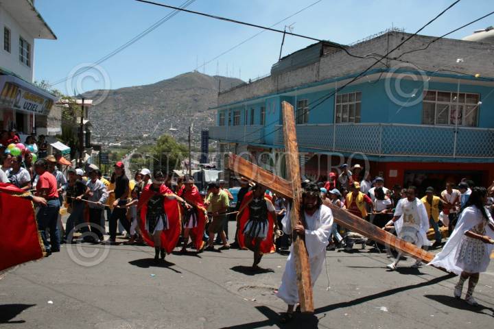 MEXICO, D.F.06ABRIL2007.-Los vecinos de la colonia Chalma de Guadalupe, en la delegación Gustavo A. Madero, hacen la representación del Viacrucis, desde hace mas de 30 año, por las calles hasta la llegada al cerro que simboliza el Golgota. FOTO JEFTÉ ARGUELLO/CUARTOSCURO.COM
