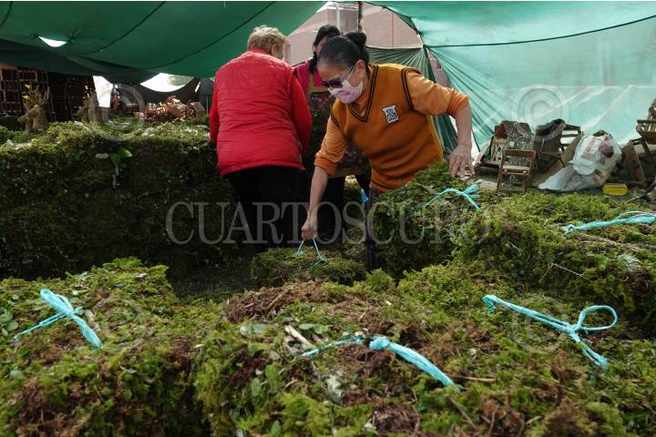 CIUDAD DE MÉXICO, 06DICIEMBRE2024.- Una mujer elige un poco de musgo para adornar el nacimiento en la Romería de la Central de Abastos (CEDA). Los pasillos de lonas se ubican en la calle Cazuela cerca del cruce entre Eje 5 y Eje 6 Sur día y noche para que las y los habitantes de la capital puedan surtirse en estas fiestas decembrinas. FOTO: GALO CAÑAS/CUARTOSCURO.COM