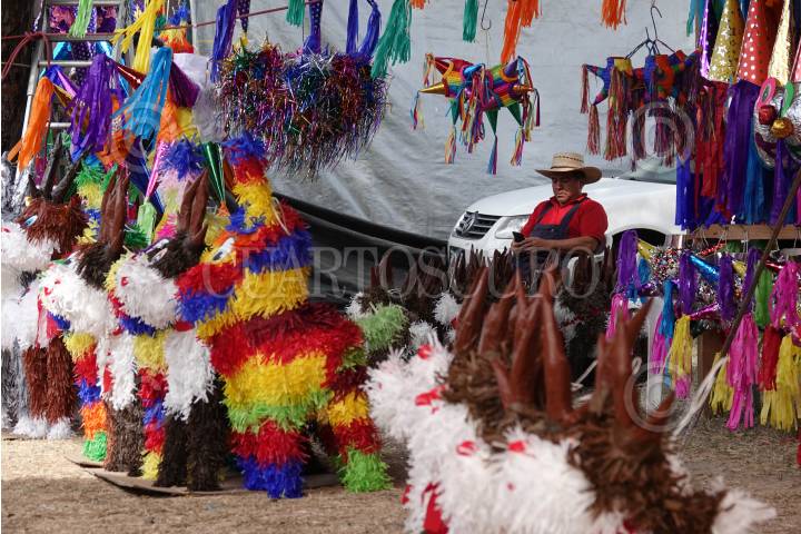 CIUDAD DE MÉXICO, 06DICIEMBRE2024.- Un vendedor de piñatas espera clientes en las inmediaciones de la Romería de la Central de Abastos (CEDA). Los pasillos de lonas se ubican en la calle Cazuela cerca del cruce entre Eje 5 y Eje 6 Sur día y noche para que las y los habitantes de la capital puedan surtirse en estas fiestas decembrinas. FOTO: GALO CAÑAS/CUARTOSCURO.COM