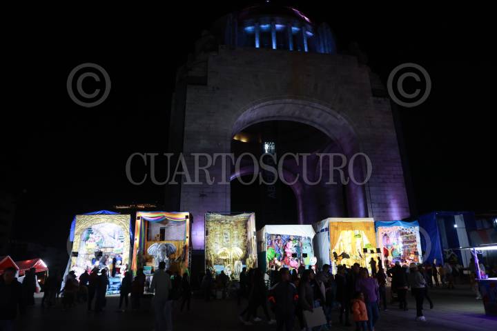 CIUDAD DE MÉXICO, 21DICIEMBRE2024. Romería en la explanada del Monumento a la Revolución, donde visitantes y vecinos acuden a disfrutar de antojitos y algunos juegos mecánicos. FOTO: EDGAR NEGRETE LIRA/CUARTOSCURO.COM