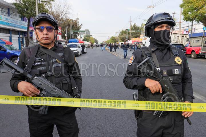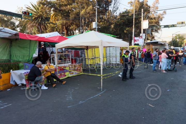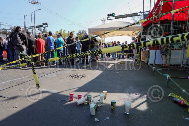 CIUDAD DE MÉXICO, 02ENERO2024.- Una balacera entre presuntos extorsionadores y policías de la Secretaría de Seguridad Ciudadana (SSC) de la Ciudad de México en la alcaldía de Iztacalco, dejó un saldo de dos muertos, siete lesionados, entre ellos un menor de edad, además de 10 hombre detenidos y 5 armas cortas. El hecho ocurrió en una romería que se ubica en la colonia Agrícola Oriental, alcaldía Iztacalco. La SSC detalló mediante una tarjeta informativa que todo ocurrió cuando personal de Inteligencia e Investigación Policial, realizaba trabajos de investigación en seguimiento a denuncias ciudadanas por el delito de extorsión, cuando en la avenida Javier Rojo Gómez y la avenida Sur 16, en la colonia Agrícola Oriental, un grupo de personas realizaron disparos en su contra. FOTO: CUARTOSCURO.COM