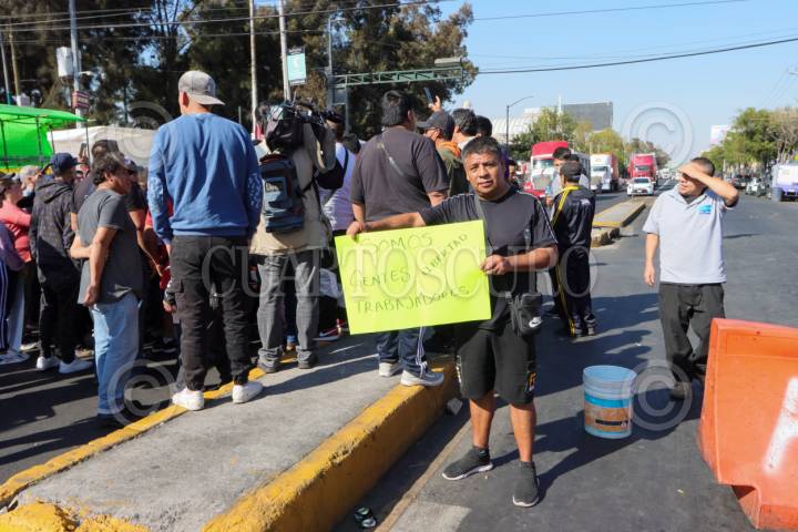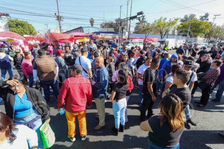 CIUDAD DE MÉXICO, 03ENERO2024.- Comerciantes de la romería que se instala en Rojo Gómez y avenida Sur 16 protestaron para exigir la liberación de sus compañeros, que fueron detenidos el día de ayer como presuntos responsables en la balacera que se suscitó el día de ayer en este tianguis, y que dejo como saldo de dos personas muertas. FOTO: ROGELIO MORALES/CUARTOSCURO.COM