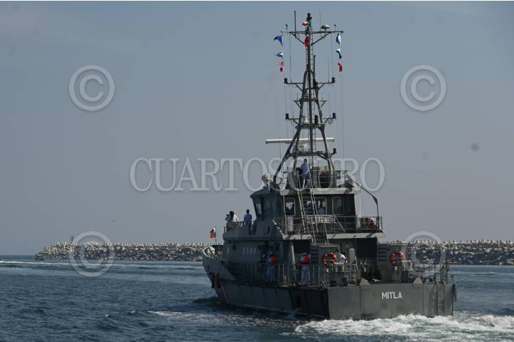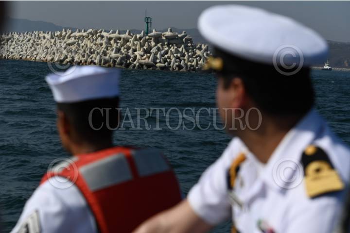 SALINA CRUZ, OAXACA,26FEBRERO2024.- Un barco de la Marina recorre el recién inaugurado Rompeolas. FOTO: DANIEL AUGUSTO/ CUARTOSCURO.COM