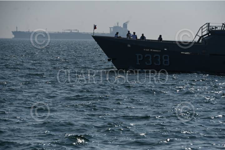 SALINA CRUZ, OAXACA,26FEBRERO2024.- Con la inauguración del Rompeolas, el gobierno mexicano continúa con los avances en el proyecto del Corredor Interoceánico, en la imagen un barco de la Marina y uno mercante se encuentran en el puerto oaxaqueño. FOTO: DANIEL AUGUSTO/ CUARTOSCURO.COM