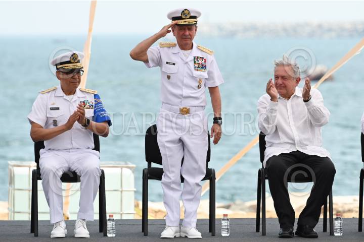 SALINA CRUZ, OAXACA, 26FEBRERO2024.- Rafael Ojeda, secretario de Marina, durante el evento de inauguración del Rompeolas. FOTO: DANIEL AUGUSTO/ CUARTOSCURO.COM