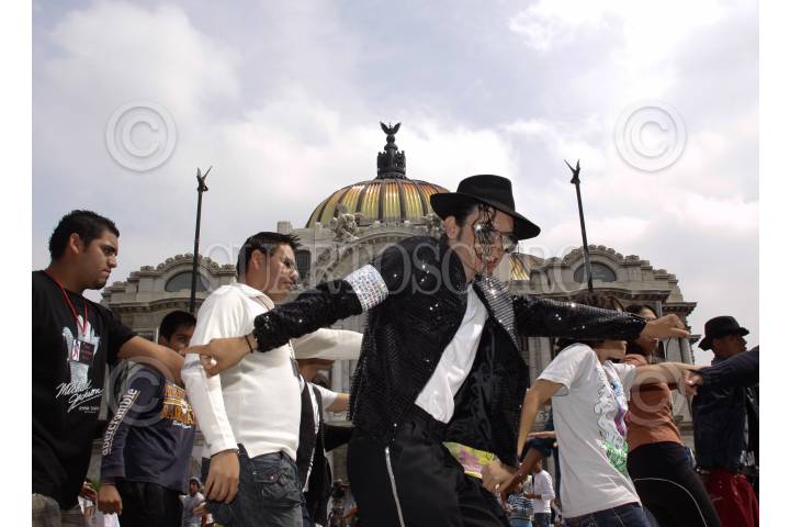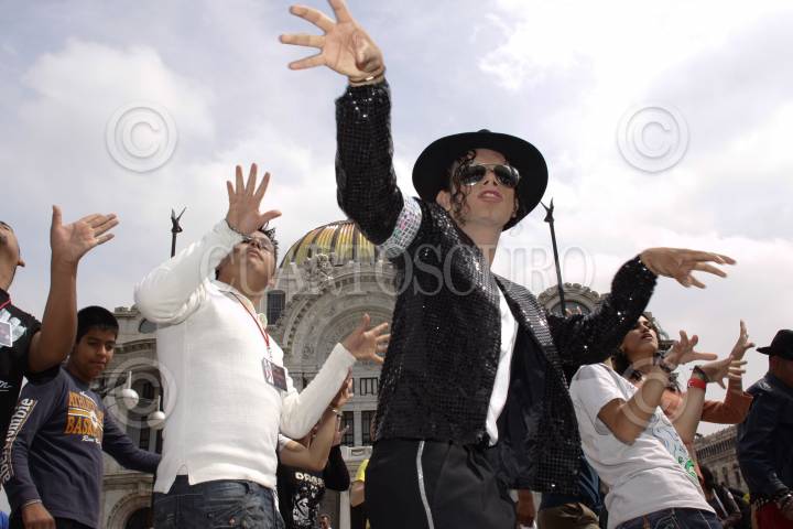 MÉXICO, D.F., 18AGOSTO2009.- Decenas de fans realizaron frente al Palacio de Bellas Artes un ensayo de Thriller, coreografía montada por Héctor Jakson y con la que buscan romper un Guinness el 29 de agosto, día en que Michael Jackson será enterrado FOTO: SÁSHENKA GUTIERREZ/CUARTOSCURO.COM