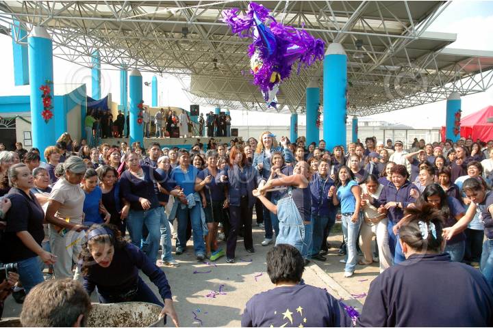MÉXICO D.F., 17DICIEMBRE2007.- Al termino de la pastorela en la que actuo la condutora Paola Durtante, las internas rompieron una piñata en el reclusorio femenil de Santa Martha. FOTO: RODOLFO ANGULO/CUARTOSCURO.COM
