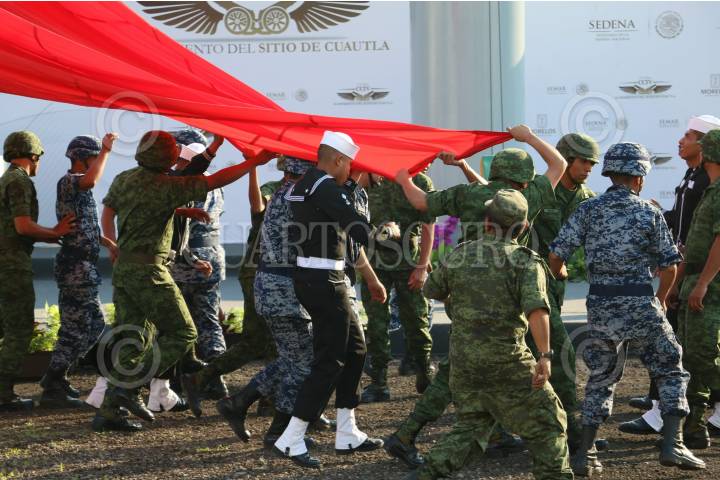 CIUDAD DE MÉXICO, 02MAYO2016.- Elementos del Ejercito Mexicano y Armada de México izan la bandera durante la conmemorativa al “CCIV” Aniversario del rompimiento del sitio de Cuautla de 1812 FOTO: SAÚL LÓPEZ /CUARTOSCURO.COM