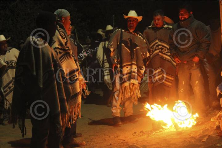 CHERÁN, MICHOACÁN, 15ABRIL2014.- En conmemoración del tercer aniversario del levantamiento, la ronda comunitaria usando la vestimenta tradicional realizó un recorrido por cada una de las fogatas, esto para recordar las noches de vela y resguardo del pueblo. FOTO: JUAN JOSÉ ESTRADA SERAFIN /CUARTOSCURO.COM