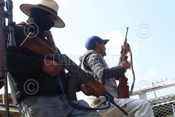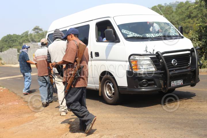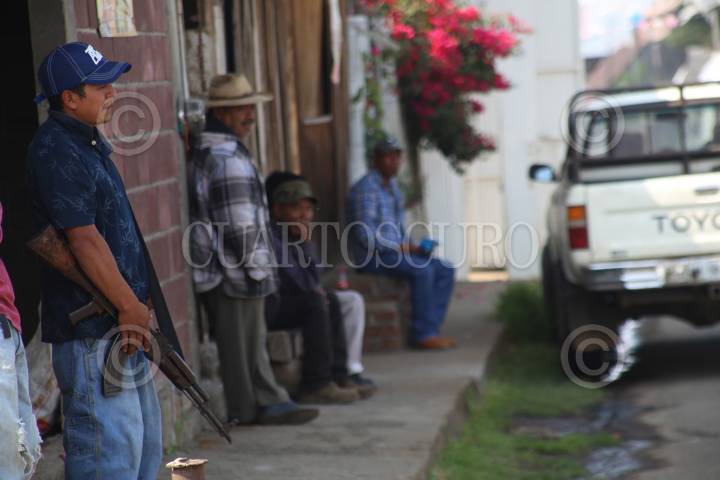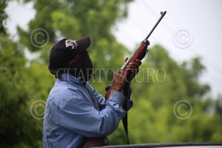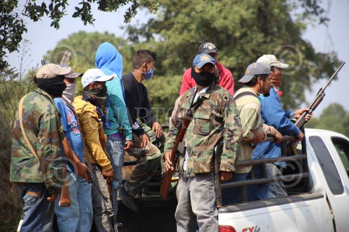 SANTA ANA ZIROSTO, URUAPAN, MICHOACÁN, 06MAYO2014.- Rondas Comunitarias del municipio de los Reyes integradas por las localidades de Cherato, Cheratillo, 18 de Marzo y Oruscato, en coordinación con las autodefensas de Periban vigilan la frontera en donde se encuentra las autodefensas después de que el pasado sábado fueron atacados por integrantes de los Caballeros Templarios. FOTO: JUAN JOSÉ ESTRADA SERAFIN /CUARTOSCURO.COM