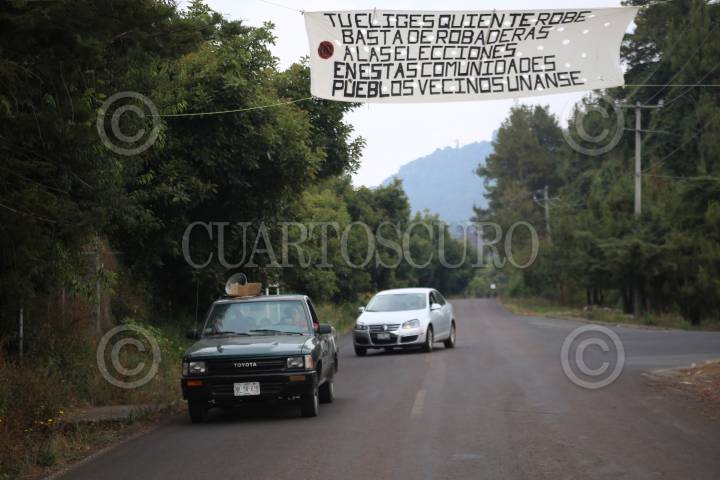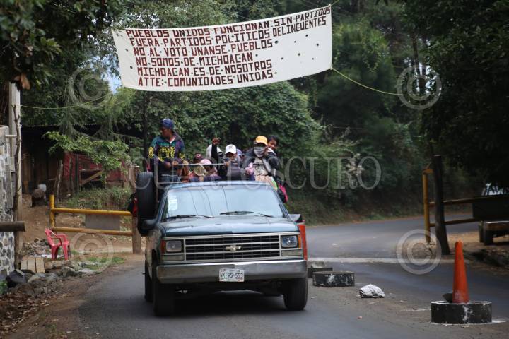 LOS REYES, MICHOACÁN, 21MAYO2015.- A menos de dos semanas para que las elecciones en Michoacán se realicen, el Consejo de las Comunidades Unidas de Cherato, Cheratillo, 18 de Marzo y Oruscáto en el municipio de Los Reyes, en asamblea comunitaria toman la decisión de no permitir las elecciones en sus comunidades, en un documento entregado a la junta local 07 de Zacapu en donde se informa al INE y al IME de que se desistiera a organizar las elecciones julio 07 y que avisaran a los partidos políticos, así como a los candidatos independientes que las dos puestas que pusieron las comunidades para defenderse de la delincuencia organizada también queda cerrado para ellos. Las Rondas Comunitarias son legítimas porque surgen debido a la incapacidad y corrupción del gobierno Federal y Estatal para proporcionarles seguridad y paz social, así mismo, cabe mencionar que la principal autoridad de los pueblos p´urépechas, que es la Asamblea General, las convoca, respalda, evalúa y sanciona, es decir, es legitimada por la mayoría de los habitantes de cada pueblo o región. FOTO: JUAN JOSÉ ESTRADA SERAFÍN /CUARTOSCURO.COM