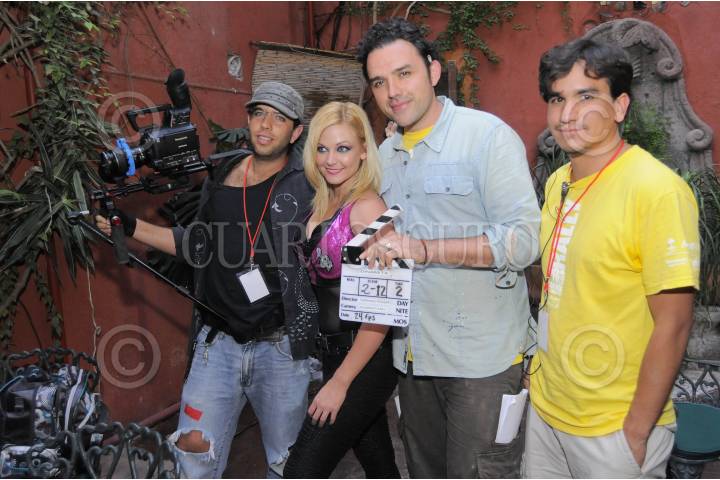 SAN MIGUEL DE ALLENDE,GUANAJUATO,23JULIO2011.- Isi Serfati, camarógrafo, la actriz, Jennifer Blake, el porductor y director, Fernando Rovzar y el actor Alexis Fridnan, filmaron "Dinamita" en el marco del Festival Internacional de Guanajuato. FOTO:FRANCISCO RODRÍGUEZ/CUARTOSCURO.COM