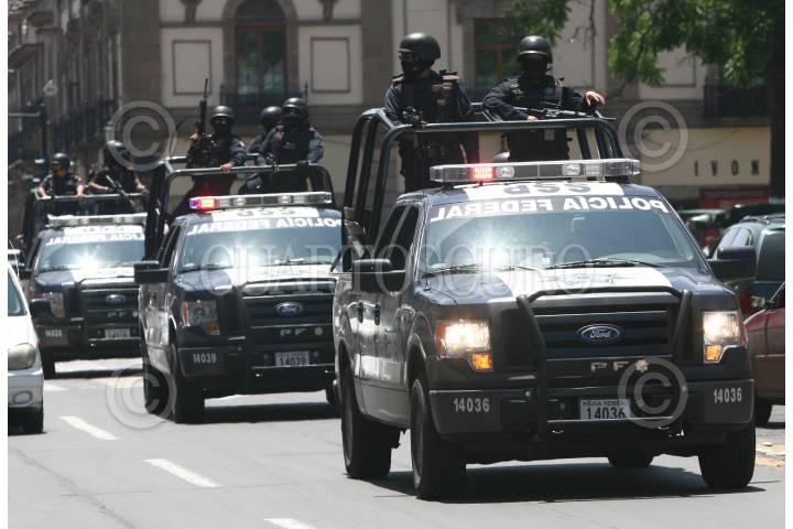 MORELIA, MICHOACAN., 16JULIO2009.- Elementos de la PFP, realizan rrecorridos en convoy´s en las principales calles y avenida de la capital de Michoacan. FOTO: SAÚL LÓPEZ E./CUARTOSCURO.COM