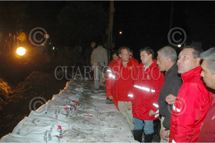 TLANEPANTLA, ESTADO DE MÉXICO, 08SEPTIEMBRE2009.- El gobernador del Estado de México, acudió la noche de ayer a la zona afectada por las lluvias en Valle Dorado en el municipio de Tlanepantla.. FOTO: CUARTOSCURO.COM