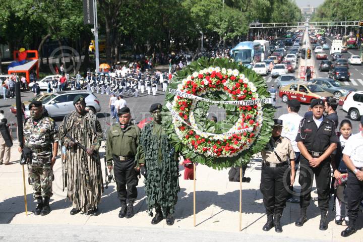 MÉXICO, D.F., 08MAYO2010.- Distintas escuelas militarizadas y de bandas de guerras acudieron al Ángel de la Independencia en donde pusieron ofrendas florales y rindieron guardia de honor al conmemora el 257 natalicio de Don Miguel Hidalgo y Costilla. FOTO: MARCO POLO GUZMÁN HERNÁNDEZ/CUARTOSCURO.COM