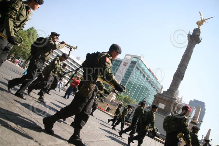 MÉXICO, D.F., 08MAYO2010.- Distintas escuelas militarizadas y de bandas de guerras desfilaron por la avenida Reforma pasando por el Ángel de la Independencia al conmemora el 257 natalicio de Don Miguel Hidalgo y Costilla. FOTO: MARCO POLO GUZMÁN HERNÁNDEZ/CUARTOSCURO.COM