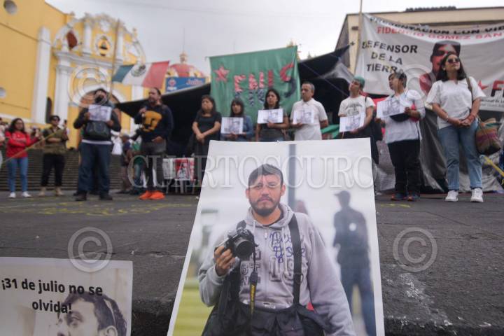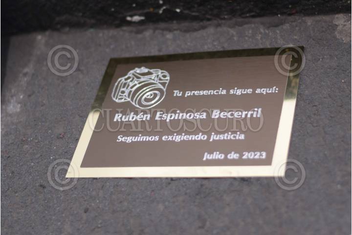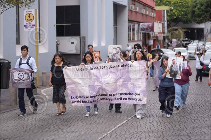 A ocho años del asesinato del fotógrafo Rubén Espinosa en la Ciudad de México, familiares y amigos marcharon para exigir justicia. Además colocaron una placa con su nombre en la plaza Lerdo de Xalapa.