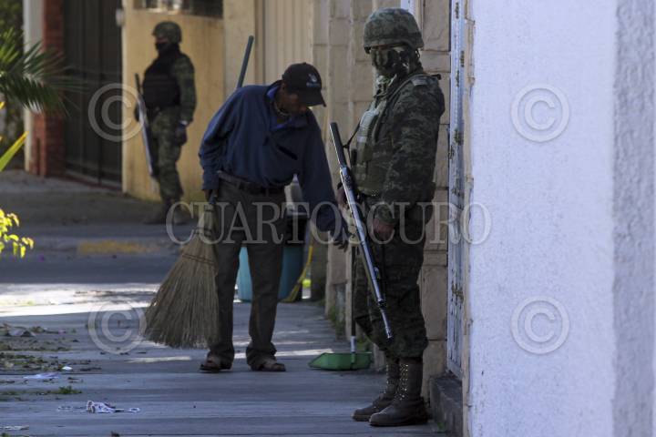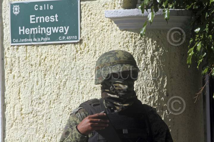 ZAPOPAN, JALISCO, 30ENERO2014.-Esta madrugada Elementos de la Secretaria de la Defensa Nacional (SEDENA) y de la Secretaria de Marina (SEMAR), llevaron a cabo un operativo en una finca que se ubica en las calles de Thomas Fuller y William Shakespeare en la colonia Jardines de la Patria en Zapopan. También en relación al operativo y de forma simultanea en diversos puntos de la ciudad hubo bloqueos con camiones incendiados. FOTO: FERNANDO CARRANZA /CUARTOSCURO.COM
