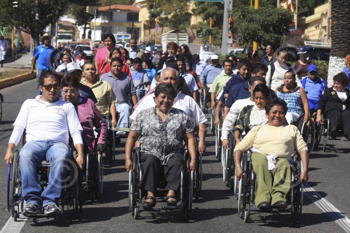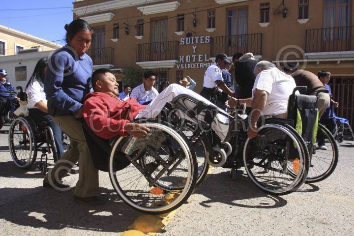 OAXACA, OAXACA, 03DICIEMBRE2011.- Como parte de las actividades por el "Día Internacional de las Personas con Discapacidad", la presidenta honoraria del Comité Municipal para el Desarrollo Integral de la Familia (DIF), María de los Ángeles Martínez Arnaud, entregó 43 sillas de ruedas para personas que sufren alguna discapacidad. Al finalizar la ceremonia todos los participantes del evento realizaron un recorrido por las calles de capital. FOTO: ARTURO PÉREZ ALFONSO/CUARTOSCURO.COM