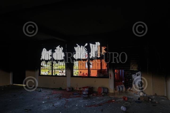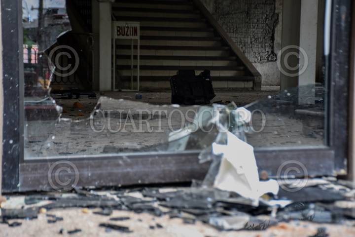 Interior del Palacio Municipal de Venustiano Carranza después de los destrozos cometidos por al menos 30 personas desconocidas hasta el momento, según datos oficiales.