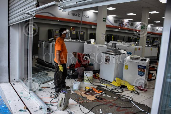 Foto panorámica de la tienda departamental que fue saqueada durante los disturbios en la cabecera municipal.