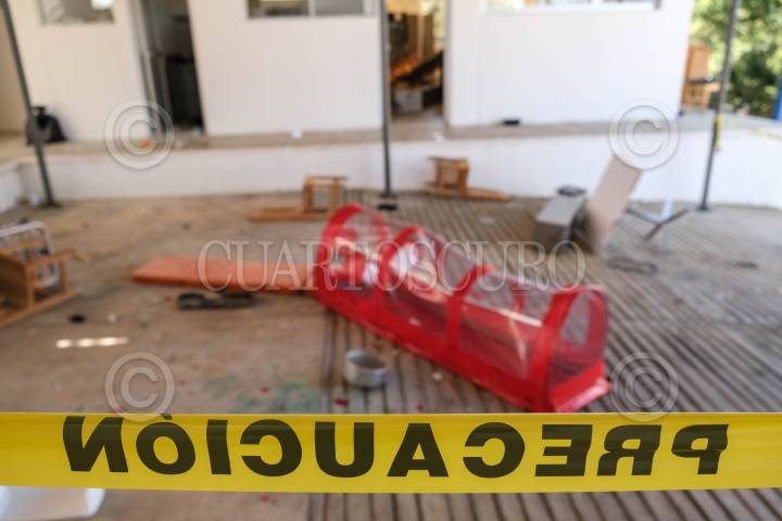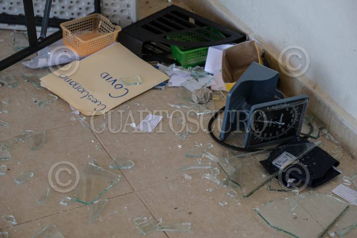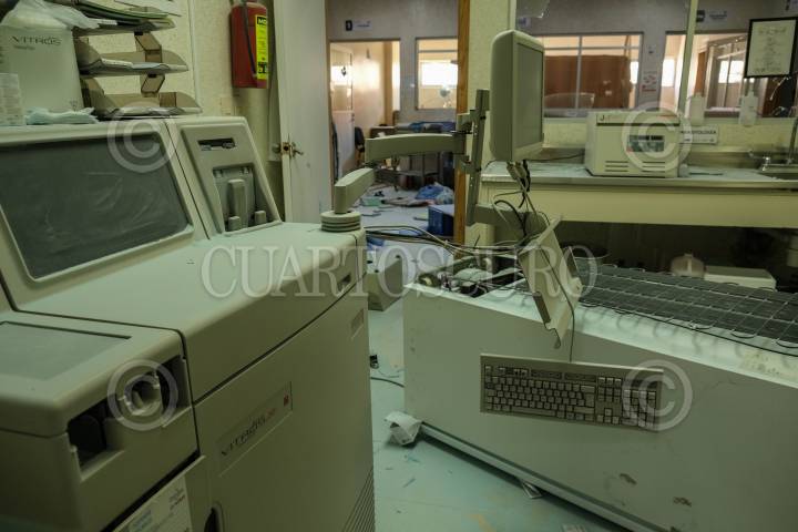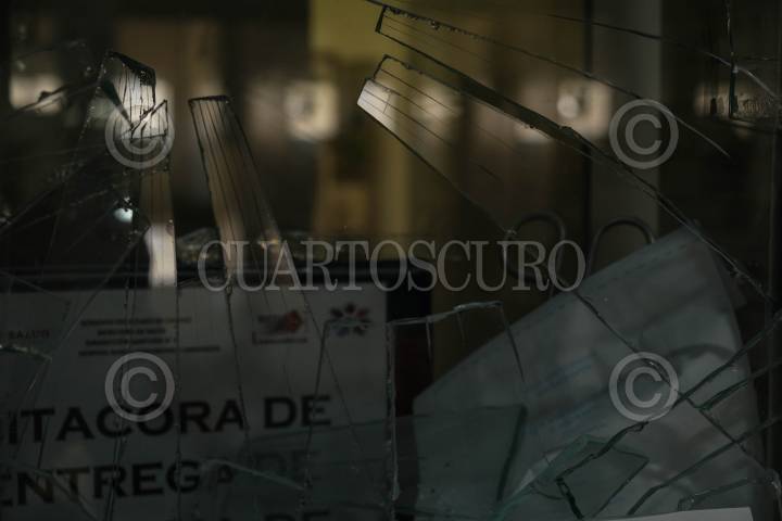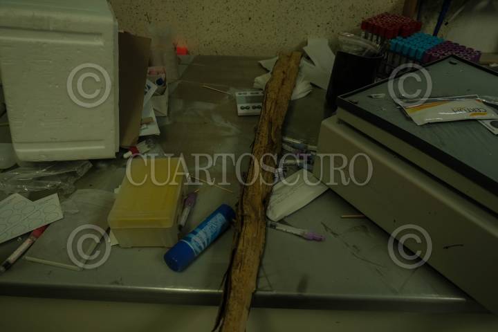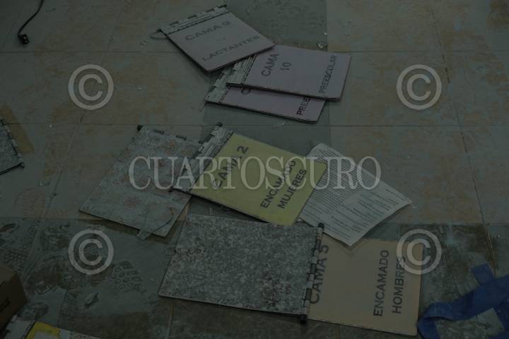 Interior del Hospital Básico Comunitario de la Secretaria de Salud estatal después de ser destrozado la noche anterior por pobladores de la región.