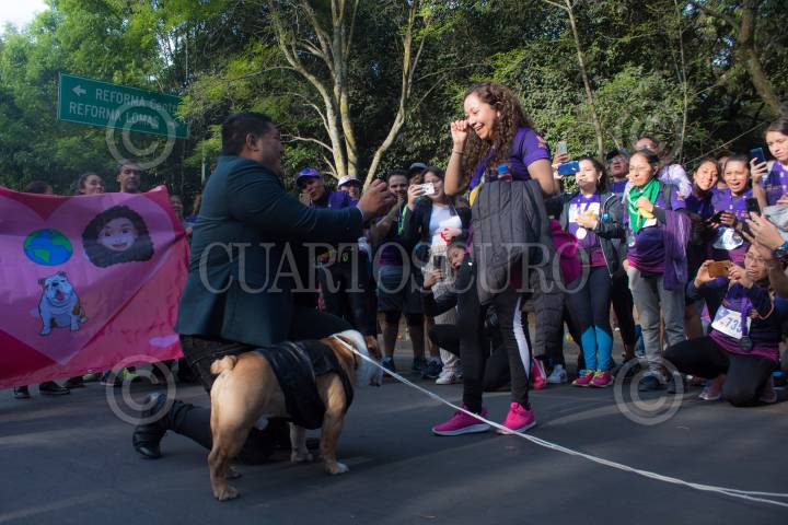 Con motivo del Día Internacional de la Mujer, se realizó frente a Monumento a Gandhi la carrrea "Chilangas Run", en donde al terminar la competencia un jóven le pidió matrimonio a su novia, acompañado de su mascota.