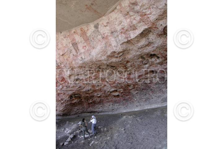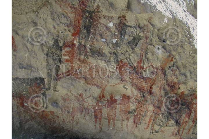 BAJA CALIFORNIA SUR, 29ENERO2015.- La arqueóloga María de la Luz Gutiérrez definió dos tendencias en las pinturas rupestres de la Sierra de Guadalupe, en Baja California Sur, que denominó: La Matanza y Guajademí, a partir del trazo de figuras antropomorfas y zoomorfas trazadas miles de años atrás. En la imagen, Cuesta Palmarito, Sierra de San Francisco. FOTO: INAH /CUARTOSCURO.COM