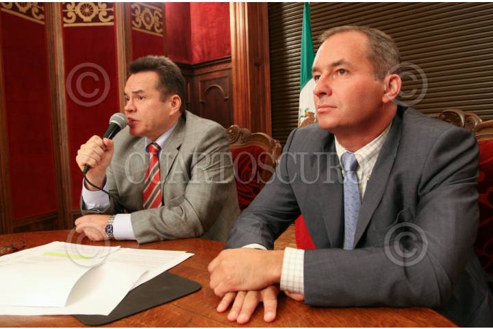 MÉXICO D.F., 25MARZO2009.- Sergey Savelev director de la agencia espacial rusa y el senador Fransisco Javier Castellón, presidente de la comisión de Ciencia y Tecnologia en el senado, durante una reunión con especialistas de la agencia espacial rusa. FOTO: RICARDO CASTELAN/CUARTOSCURO.COM