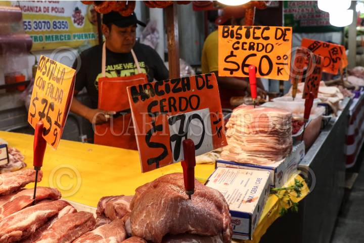 Continúan los precios altos en diversos productos de la canasta básica siendo la carne de cerdo, aguacate y cebolla los más afectados. Carne de cerdo de 75 a 80 pesos el kilo; aguacate de 70 a 75 pesos por kilo, y cebolla hasta 28 pesos por kilo.