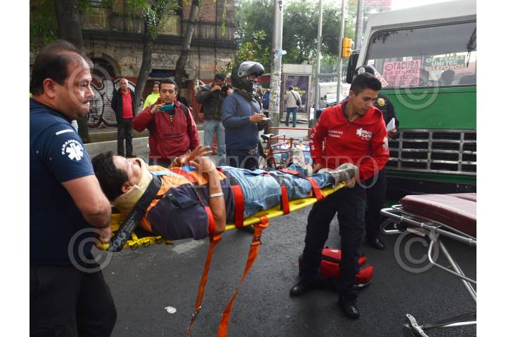 MÉXICO, D.F., 29ABRIL2015.- Un hombre que viajaba en su triciclo fue atropellado por un microbus de la ruta 1, el ciclista resultó lesionado y fue atendido por paramédicos, el incidente ocurrió en avenida Chapultepec y Cuauhtémoc. FOTO: ARMANDO MONROY /CUARTOSCURO.COM