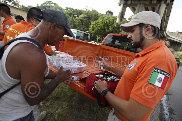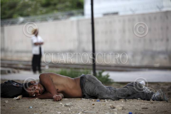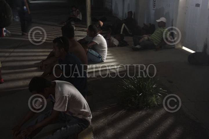 COATZACOALCOS, VERACRUZ., 25MAYO2013.- Una treintena de migrantes, principalmente Hondureños, aguardan los vagones del ferrocarril que los trasladará en búsqueda del sueño americano. Mientras esperan, los integrantes de la Misión de Observación en la Ruta Migratoria, acompañados por el grupo Beta del INM, les brindaron indicaciones para el viaje, agua y medicamento. FOTO: FÉLIX MÁRQUEZ /CUARTOSCURO.COM