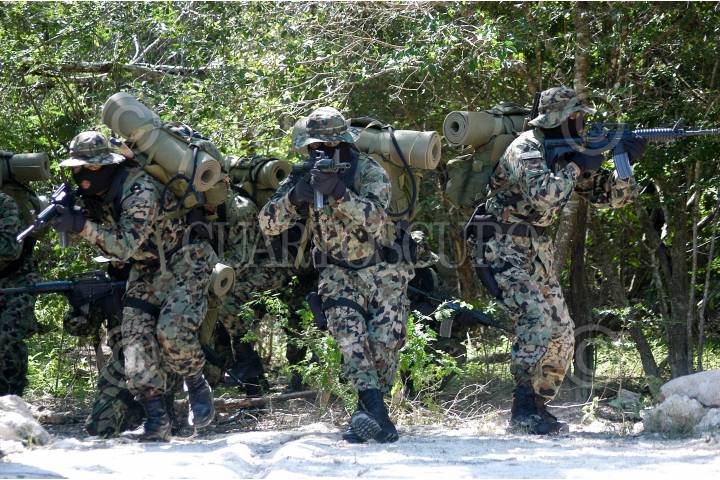 CAMPECHE, 16NOVIEMBRE2010.- Elementos de las Fuerzas Especiales, realizaron una demostración de los ejercicios de rutina de trabajo, durante la capacitación que adquieren dentro de la Armada de México. FOTO: GUILLERMO PEREA/CUARTOSCURO.COM