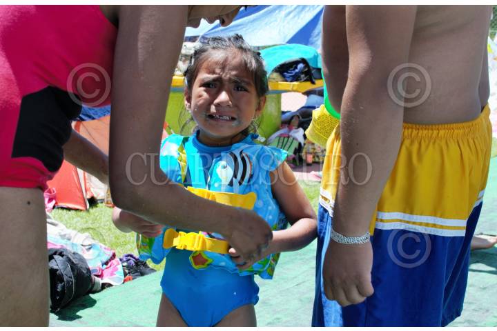 MÉXICO, D.F., 04ABRIL2015.- Familias en trajes de baño, cargadas con flotadores, abarrotaron el Balneario Olímpico de Pantitlán situado al oriente de la ciudad. Al ser una opción económica para las familias que no salieron de la ciudad en Semana Santa, es uno de los destinos turísticos más populares para los capitalinos. FOTO: MARÍA JOSÉ MARTÍNEZ /CUARTOSCURO.COM