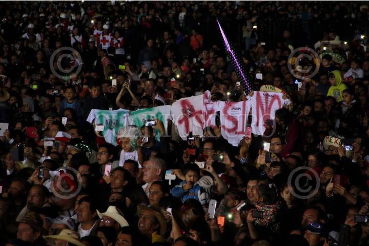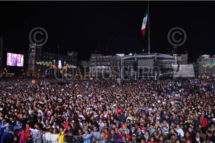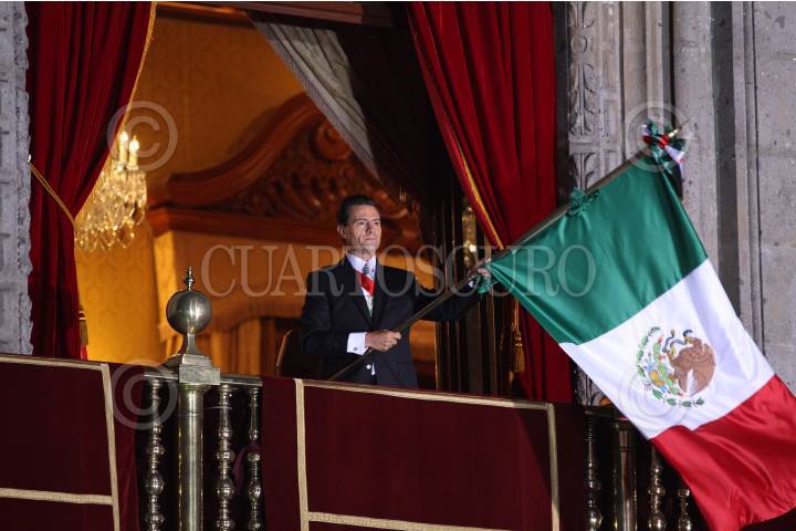 MÉXICO, D.F., 15SEPTIEMBRE 2015.- Enrique Peña Nieto, presidente de México presidió la conmemoración del 205 aniversario de la independencia mexicana. Algunos de los espectadores, en playeras pintaron la leyenda "Peña Asesino" frente al balcón presidencial. Minutos despues, acompañado de su familia saludó a sus seguidores. FOTO: ISABEL MATEOS /CUARTOSCURO.COM