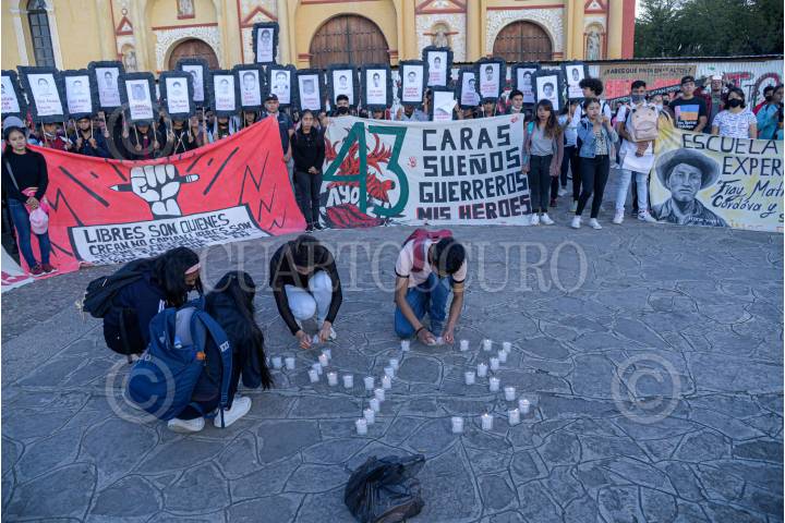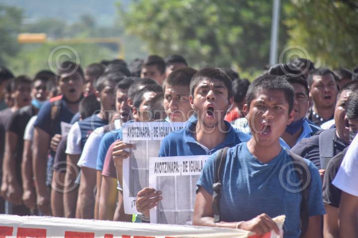 Estudiantes de la Escuela Normal Jacinto Canek marcharon en el marco del séptimo aniversario de la desaparición de los 43 normalistas de Ayotzinapa, Guerrero.