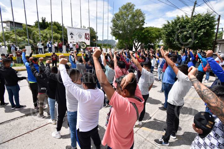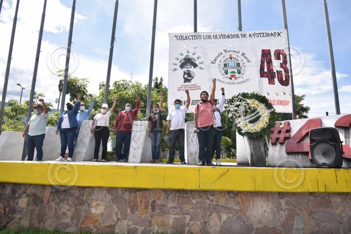 Normalistas de la Escuela Normal Rural "Raúl Isidro Burgos" se manifestaron en el Antimonumento a los 43, en el marco de el séptimo aniversario de su desaparición, señalando que el gobierno actual aún no avanza en las investigaciones.