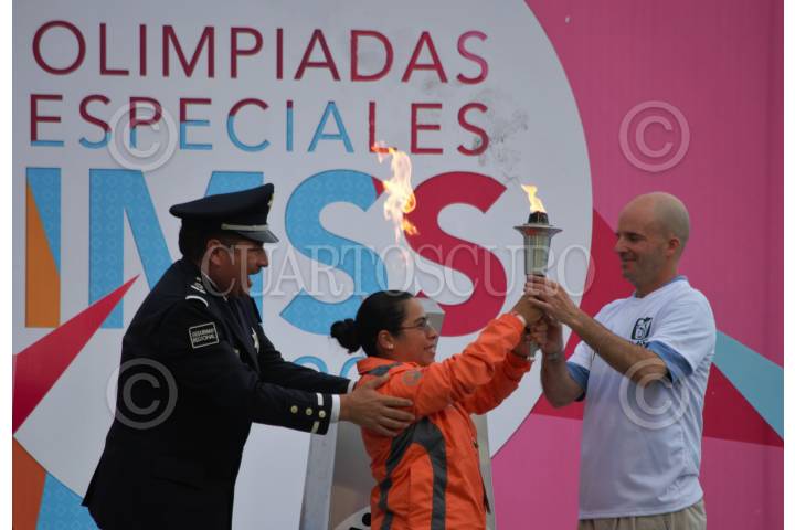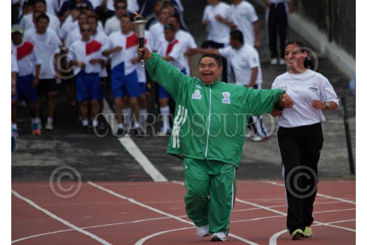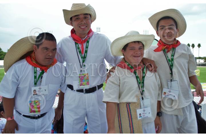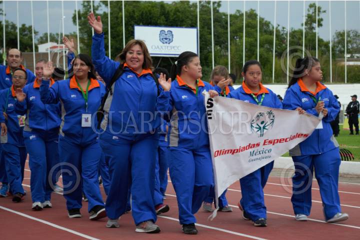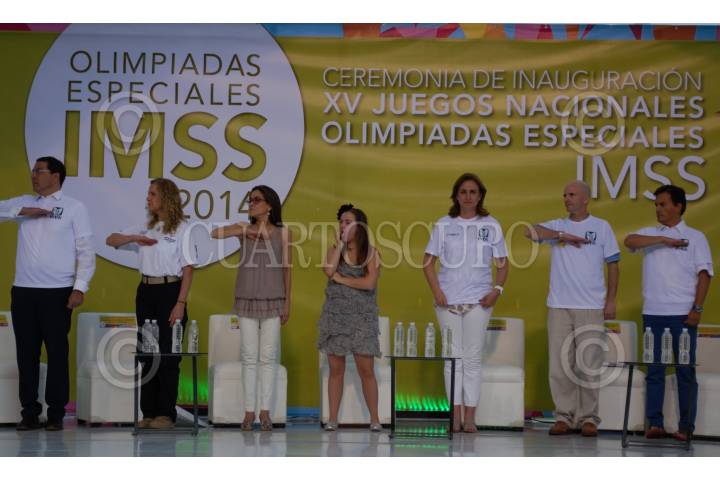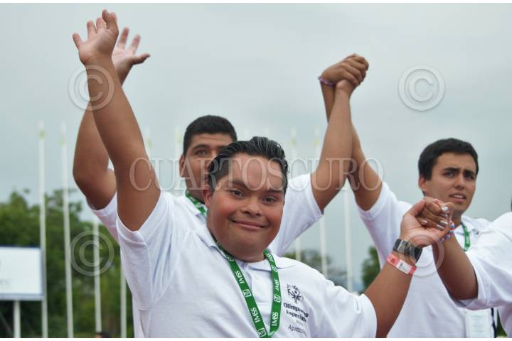 OAXTEPEC, MORELOS, 23AGOSTO2014.- Deportistas con capacidades especiales desfilaron en la Ceremonia Inaugural de los XV Juegos Nacionales Olimpiadas Especiales IMSS en el Centro Vacacional Oaxtepec, las cuales se llevarán a cabo del 23 al 28 de agosto. José Antonio González, director general del Instituto Mexicano del Seguro Social recibió la antorcha y se realizó el encendido del pebetero. FOTO: MARÍA JOSÉ MARTÍNEZ /CUARTOSCURO.COM