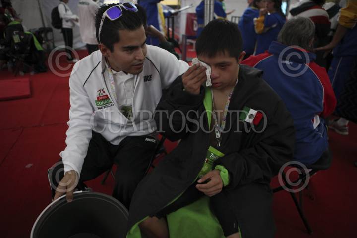 MORELIA, MICHOACÁN, 10NOVIEMBRE2014.- El día de hoy se llevó a cabo el segundo día de competencias del VII Campeonato Mundial de Natación para Personas con Síndrome de Down, el cual se realiza en el complejo deportivo Indeco. FOTO: ALAN ORTEGA /CUARTOSCURO.COM