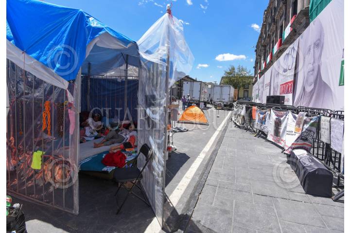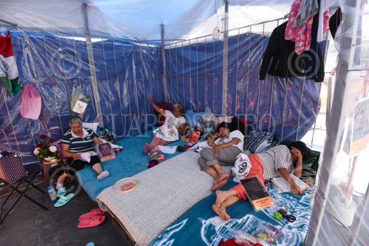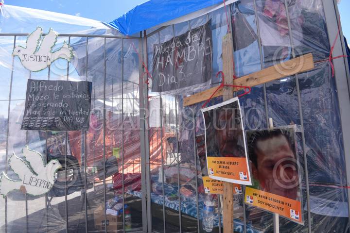 TOLUCA, ESTADO DE MÉXICO, 11SEPTIEMBRE2023.- Mujeres integrantes de “Haz Valer Mi Libertad” familiares de injustamente presos que mantienen ya 103 días de plantón frente a Palacio de Gobierno llevan tres días en huelga de hambre, ante la falta de atención por parte de Gobierno del Estado de México, piden ser atendidos y se revisen los casos de sus familiares a quienes les imputaron delitos que no cometieron. FOTO: CRISANTA ESPINOSA AGUILAR /CUARTOSCURO.COM
