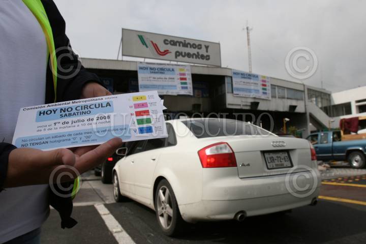 MÉXICO, D.F., 04JULIO2008.- A partir de este sábado 5 de julio entra en vigor el programa Hoy no circula sabatino en el Distrito Federal y el Estado de México, por lo que no podrán circular los vehículos con holograma 2, engomado amarillo con terminación de placas 5 y 6, foráneos o sin verificación. FOTO: RICARDO CASTELAN /CUARTOSCURO.COM