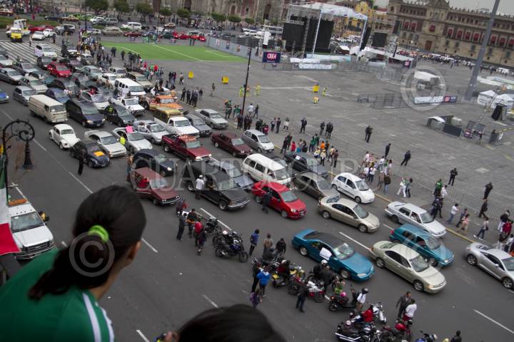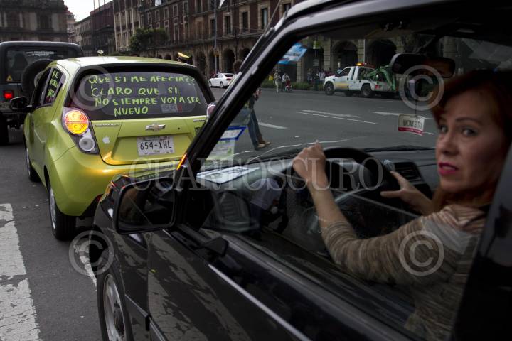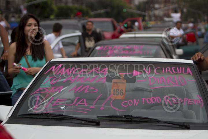 MÉXICO, D.F., 29JUNIO2014.- Decenas de automovilistas circularon del Ángel de la Independencia al Zócalo de la ciudad, para protestar en contra de la implementación de el Hoy no Circula Sabatino, que entraría en vigor el próximo 01 de julio. FOTO: GUILLERMO PEREA /CUARTOSCURO.COM