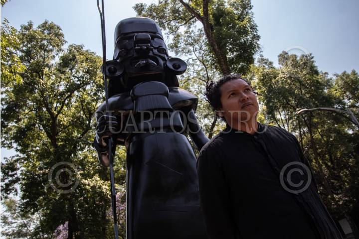 Sabino Guisu, artista originario de Juchitán de Zaragoza, escultor de la deidad zapoteca Pitao Cocijo instalada en Roma. La pieza, de 5. 1 metros de altura forma parte del proyecto “Cocijo”, que Gisu comenzó en 2019 y que ya ha sido expuesto en la galería Maia de la colonia Roma.