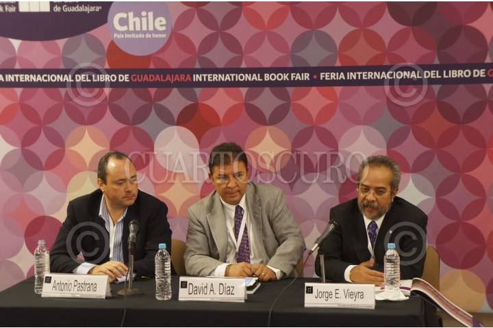 GUADALAJARA, JALISCO., 27NOVIEMBRE2012.- El fotógrafo Antonio Pastrana, el director de Extensión Universitaria de la UAM, David A. Díaz y el secretario de la Unidad Lerma de la institución educativa, Jorge E. Vieyra, presentaron el libro "Aromas y sabores de Lerma", editado por la UAM, durante la 26 Feria Internacional del Libro. FOTO: ANA COSTABILE /CUARTOSCURO.COM