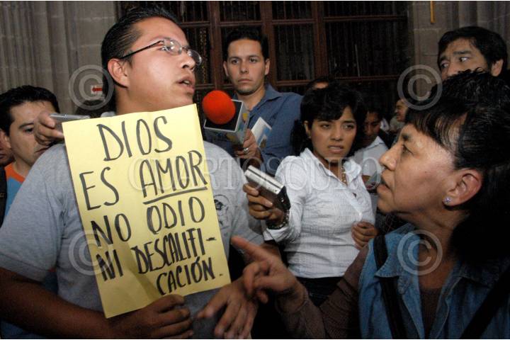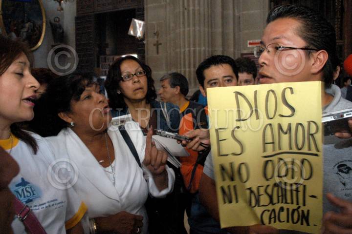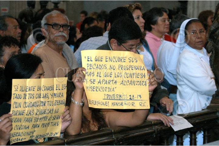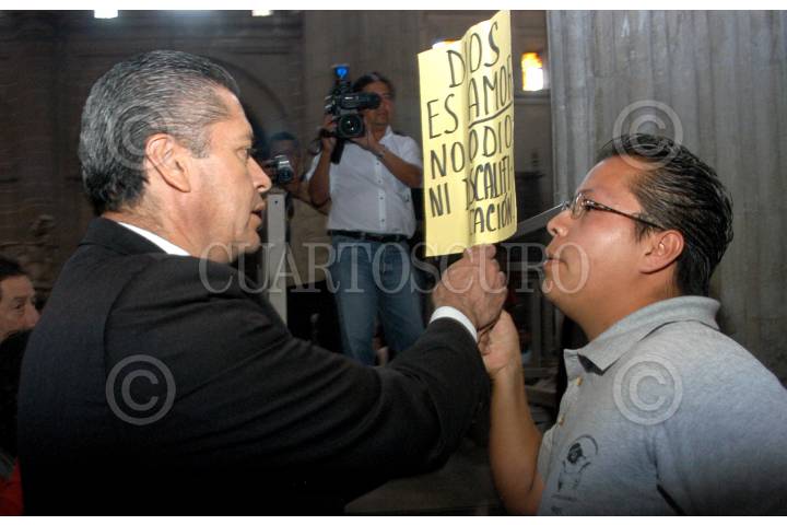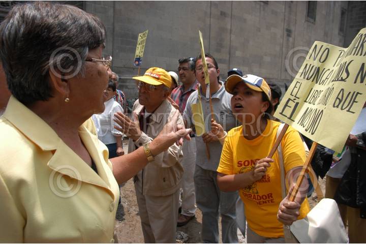 MÉXICO D.F. 20AGOSTO2006.- Simpatizantes del candidato a la presidencia de la república Andrés Manuel López Obrador de la coalición Por el Bien de Todos, fueron sacados de la misa que se realizo en la Catedral Metropolitana, al manifestarse en silencio a favor del conteo voto por voto. FOTO: Guillermo Perea/CUARTOSCURO.COM