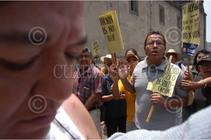 MÉXICO D.F. 20AGOSTO2006.- Simpatizantes del candidato a la presidencia de la república Andrés Manuel López Obrador de la coalición Por el Bien de Todos, fueron sacados de la misa que se realizaba en la Catedral Metropolitana, al manifestarse en silencio a favor del conteo voto por voto. FOTO: Guillermo Perea/CUARTOSCURO.COM