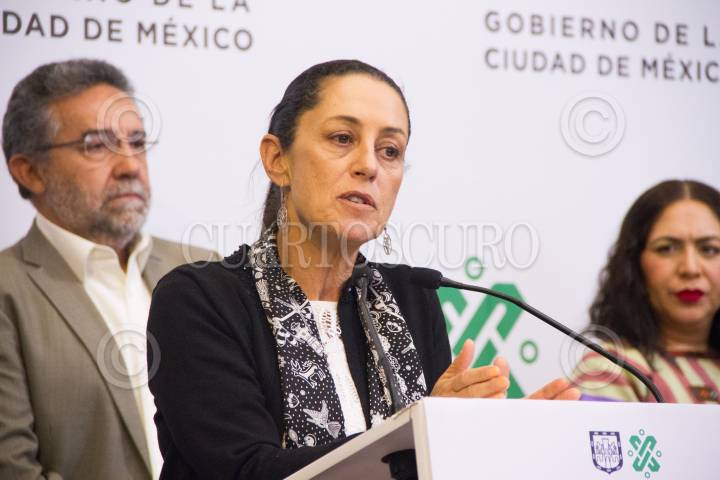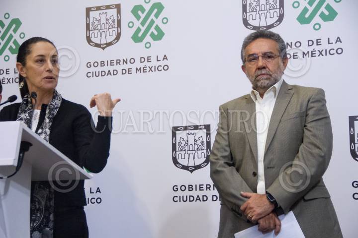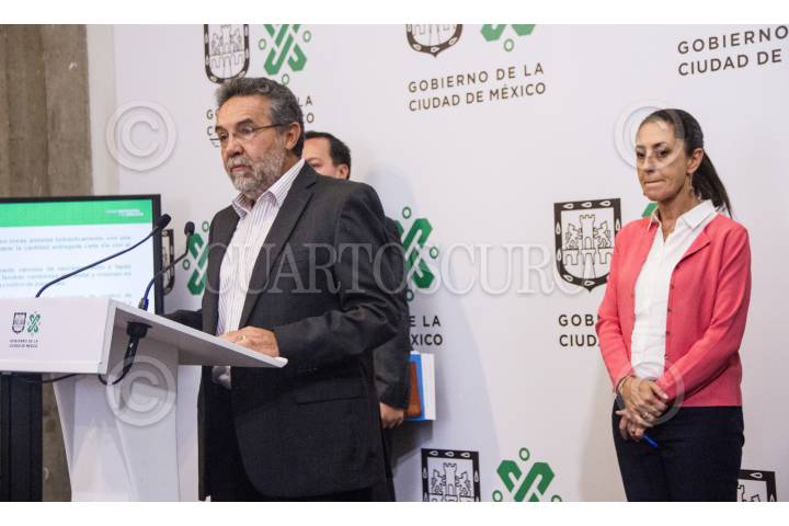 CIUDAD DE MÉXICO, 04ABRIL2019.- Claudia Sheinbaum, jefa del Gobierno de la Ciudad acompañada de Rafael Carmona, director del Sistema de Aguas de la Ciudad de México, en conferencia de prensa esta mañana en el salón Francisco Zarco del Ayuntamiento Capitalino. FOTO: VICTORIA VALTIERRA /CUARTOSCURO.COM