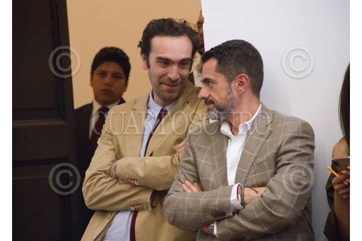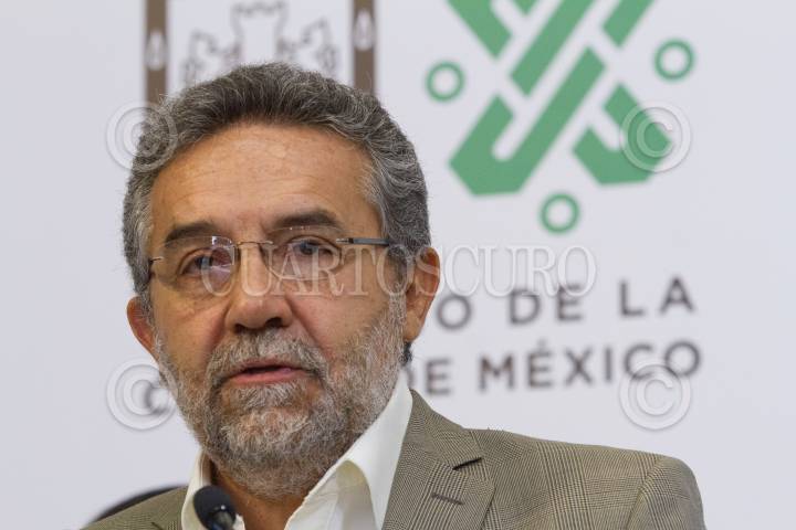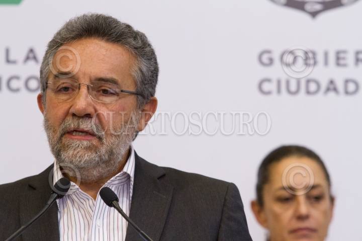 CIUDAD DE MÉXICO, 04ABRIL2019.- Claudia Sheinbaum, jefa del Gobierno de la Ciudad acompañada de Rafael Carmona, director del Sistema de Aguas de la Ciudad de México, en conferencia de prensa esta mañana en el salón Francisco Zarco del Ayuntamiento Capitalino. Andrés Lajous Loaeza e Iván Escalante, conversan en la rueda de prensa. FOTO: VICTORIA VALTIERRA /CUARTOSCURO.COM