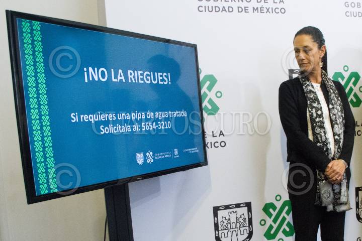 CIUDAD DE MEXICO. 01ABRIL2019.- La jefa del Gobierno de la Ciudad, Claudia Sheinbaum Pardo, acompañada del director del Sistema de Agua de la Capital, presentaron la campaña con el nombre "No la Riegues", en el salón Francisco Zarco del Antiguo Palacio del Ayuntamiento. FOTO: VICTORIA VALTIERRA / CUARTOSCURO.COM