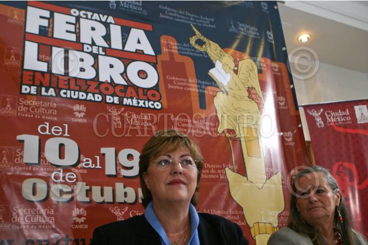 MÉXICO D.F., 24SEPTIEMBRE2008.- Elena Cepeda de León, secretaria de Cultura del gobierno del Distrito Federal y Paloma Saiz Tajero, directora de la Feria del Libro, durante la presentación de la Octava Feria del Libro en el Zócalo de la Ciudad de México que se realizará del 10 al 19 de octubre. FOTO: RODOLFO ANGULO/CUARTOSCURO.COM